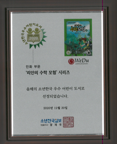 2020 소년한국 우수 어린이 도서 선정 페이지 정보 작성자 WeDu 댓글 0건 조회 10,098회 작성일 21-12-31 13:00 본문 2020-12-30 '리안의 수학 모험' 시리즈 우수 어린이 도서 선정 소년한국일보 대표이사 List Previous2021 4IR AWARDS 대상 21.12.31 Next2020 기술혁신 우수기업 21.12.31