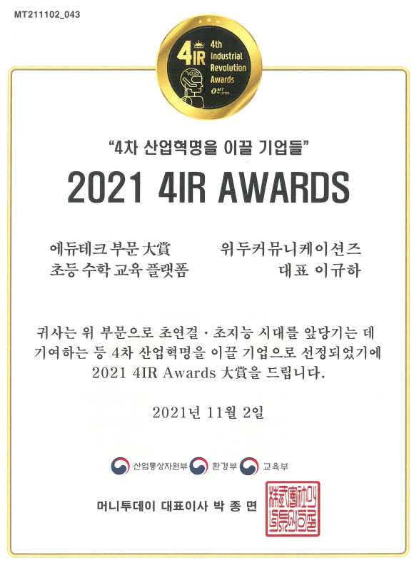 2021 4IR AWARDS 대상 페이지 정보 작성자 WeDu 댓글 0건 조회 11,222회 작성일 21-12-31 13:01 본문 2021-11-02 2021 4IR AWARDS 대상 머니투데이 List Previous2021 소년한국 우수 어린이 도서 22.01.06 Next2020 소년한국 우수 어린이 도서 선정 21.12.31