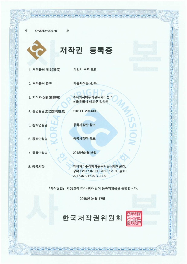 [한국/저작권] 리안의 수학 모험 페이지 정보 작성자 WeDu 댓글 0건 조회 6,362회 작성일 19-05-30 19:07 본문 2018-04-16 저작권 C-2018-009751 리안의 수학 모험 / 미술저작물>만화 List Previous[한국/저작권] 길리 19.05.30 Next[한국/저작권] 신입사원조기전력화 이러닝 콘텐츠 19.05.30
