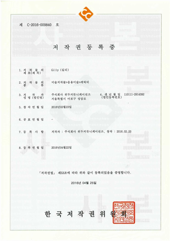 [한국/저작권] 길리 페이지 정보 작성자 WeDu 댓글 0건 조회 6,473회 작성일 19-05-30 19:07 본문 2016-04-22 저작권 C-2016-009840 길리 / 미술저작물>응용미술>캐릭터 List Previous[한국/저작권] 나무트 19.05.30 Next[한국/저작권] 리안의 수학 모험 19.05.30